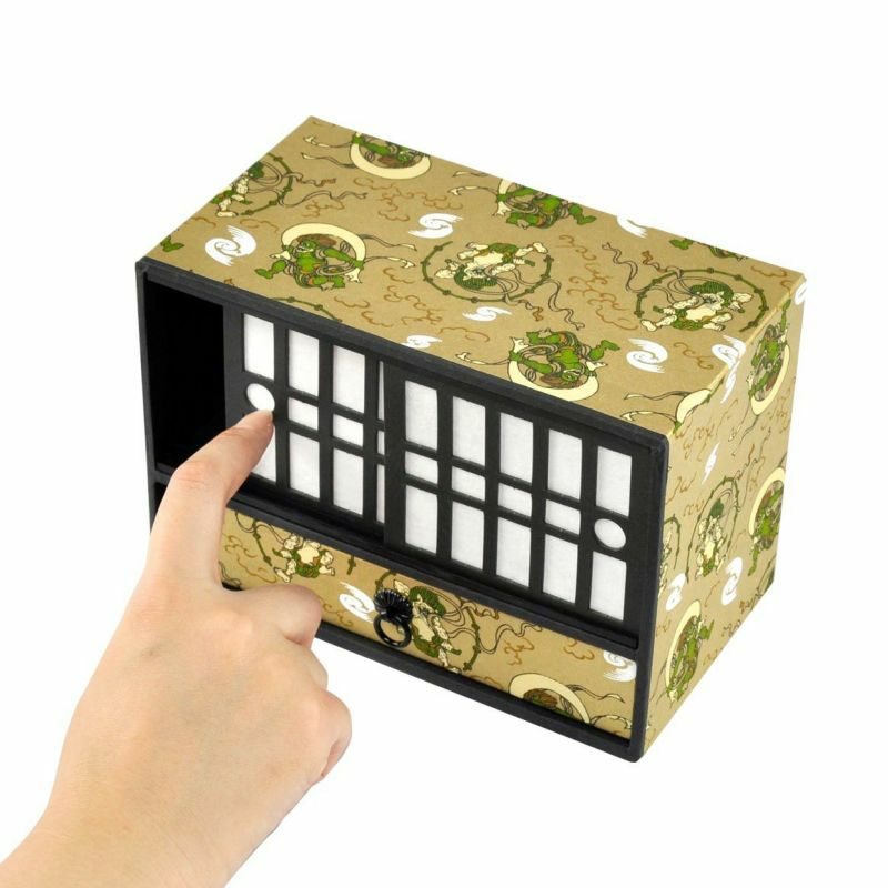 和紙柄番号474番を使った完成見本。玄関に置いて、鍵や印鑑などの収納に便利です。