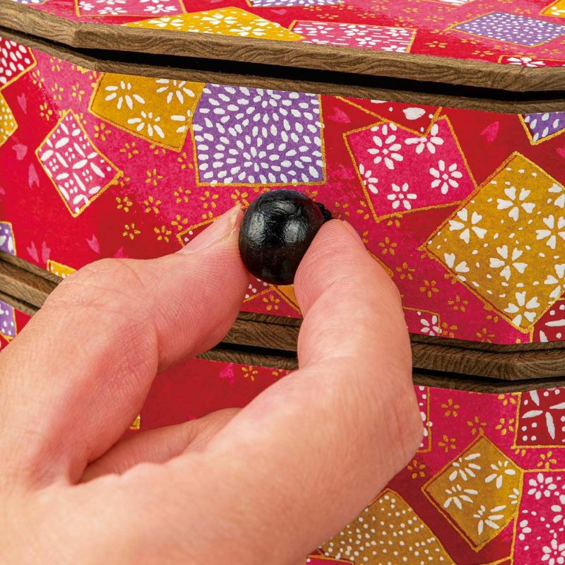 取っ手はおしゃれな丸いウッドビーズを使用しています。