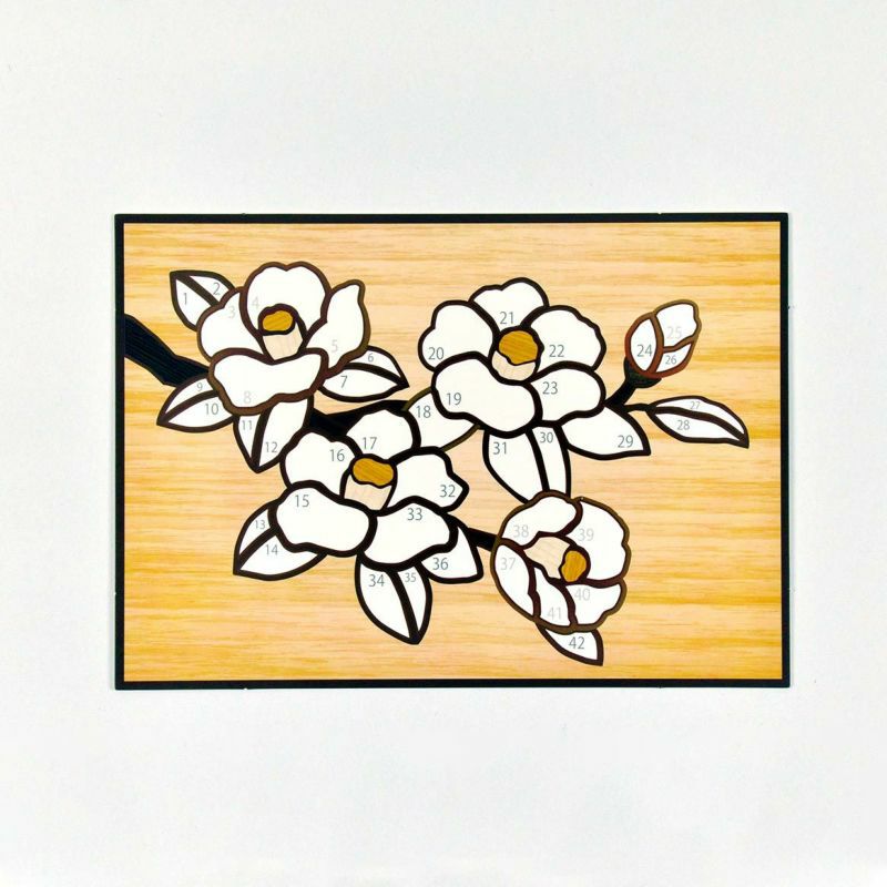 - 3で切り取ったパーツの裏紙をはがし、下絵ボードの指定番号に貼っていきます。