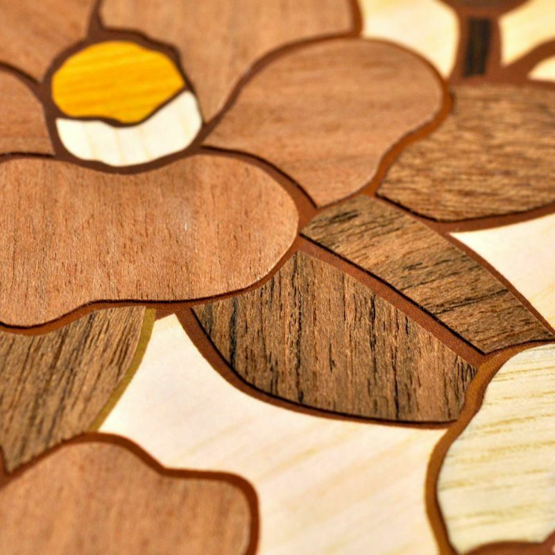 シンプルながらも、木目を活かして葉脈などを繊細に表現しています。