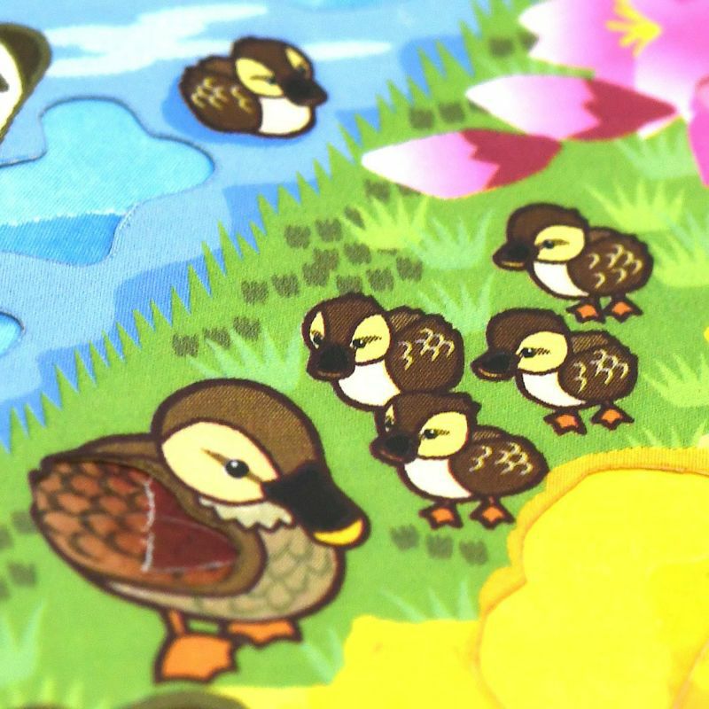 カルガモのヒナが1羽遅れて追いかけてくる姿は愛らしく、親子の様子にほっこり癒されます。