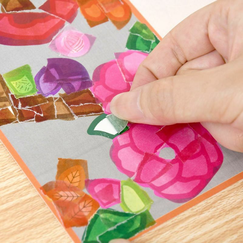 グラデーションが美しい8色のシールは、ちぎる場所で色合いが違い、一人ひとり違う仕上がりになります。