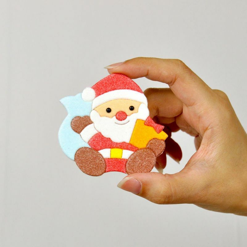 裏側にマグネットを付けます。冷蔵庫などに貼って使えて便利です。