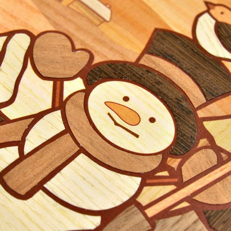 - 1で切り分けた両面シール型紙の裏紙をはがし、指定の木のシートの裏に貼ります。