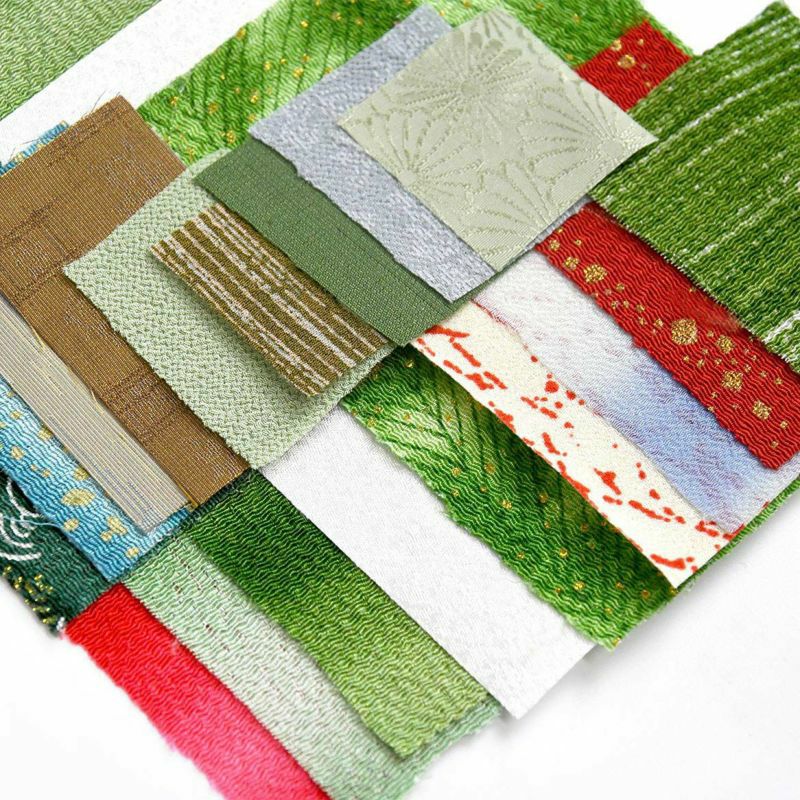 3種類のちりめん布を使って斑入り椿を表現します。金が散りばめられた金彩や濃淡のあるぼかし、まだら模様のちりめん布です。