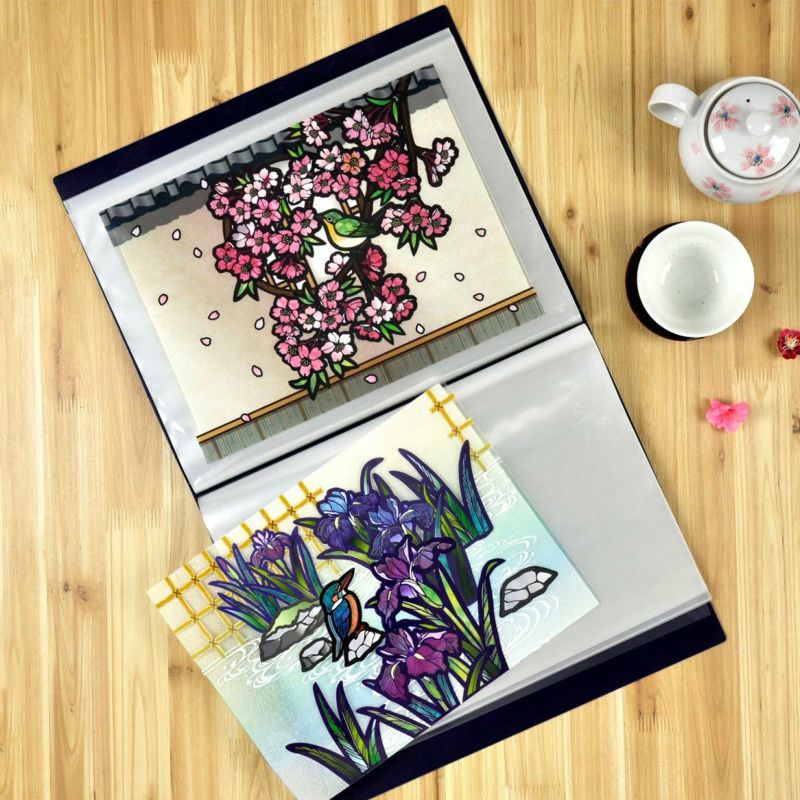 B4サイズのファイルに収納可能なサイズ。コレクションとして眺めたり、あかり本体一つで絵柄を入れ替えお楽しみいただけます。