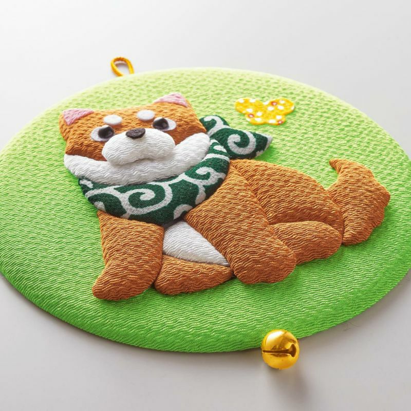 ちょこんと座った姿があどけない柴犬の子犬を、ふっくらとしたパーツで可愛らしく仕上げる壁飾りです。