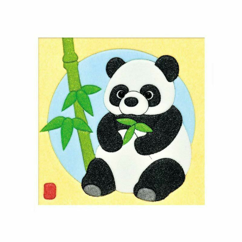 キラキラ輝くパウダーをかけて可愛らしいパンダの絵を描きます。