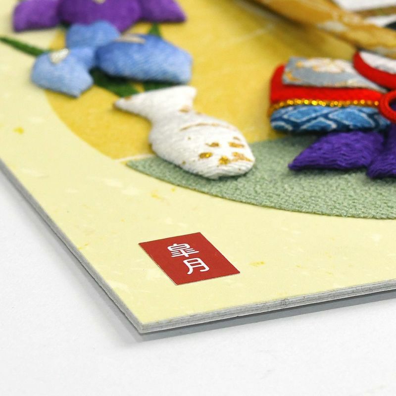 絵柄の左下の落款は「皐月」「五月」「文字なし」の3種類から選んで貼ることができます。説明書から切り離せるようになっています。