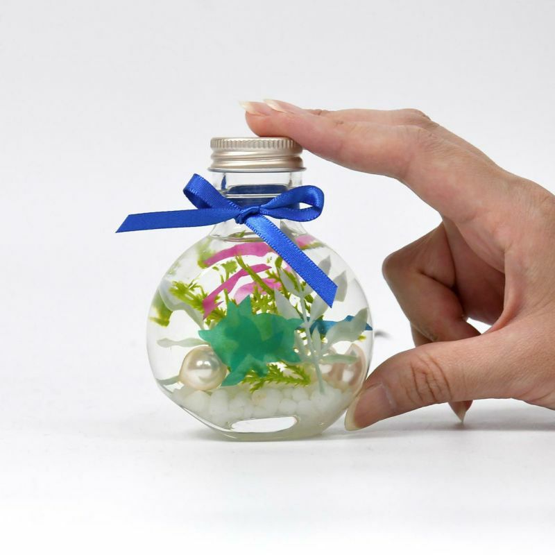 - 瓶に付属の小石、ビー玉、花材等を入れていきます。