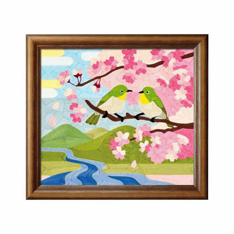 刺しゅう糸を下絵ボードに貼っていく単純作業で作ることが出来ます。簡単だけれど作り応えもあり、完成度に満足できる一品です。
