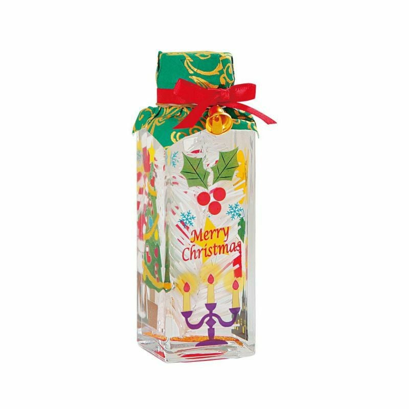 - 瓶に1cm程度オイルを注ぎ、3で作った透明シートを入れてそれぞれ側面に沿わせていきます。