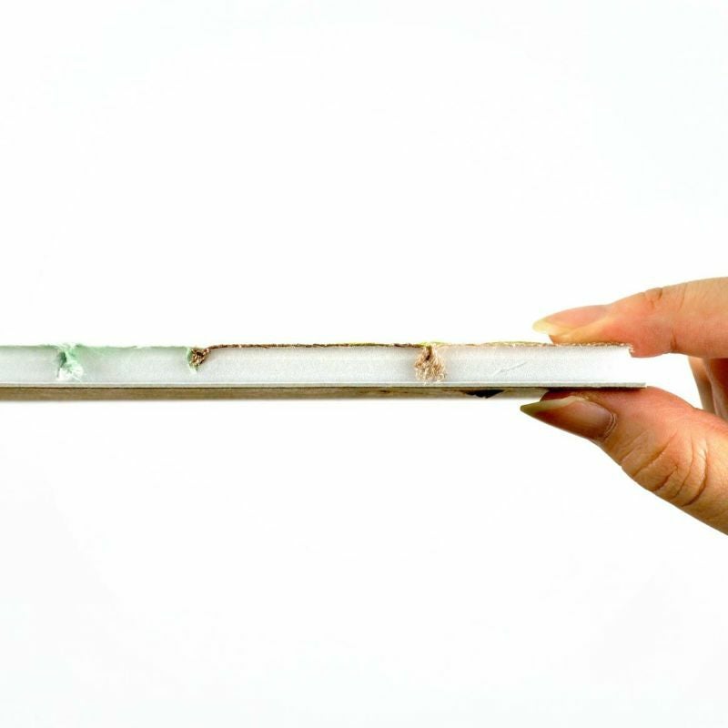 - 型抜き済みボードの裏面全体に薄くボンドを塗り、裏板に貼りつけます。