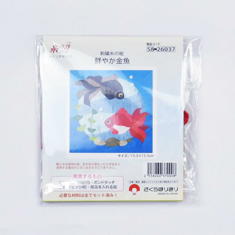 光沢感のあるフランス産の刺しゅう糸を16色使用して涼しげな金魚を表現します。