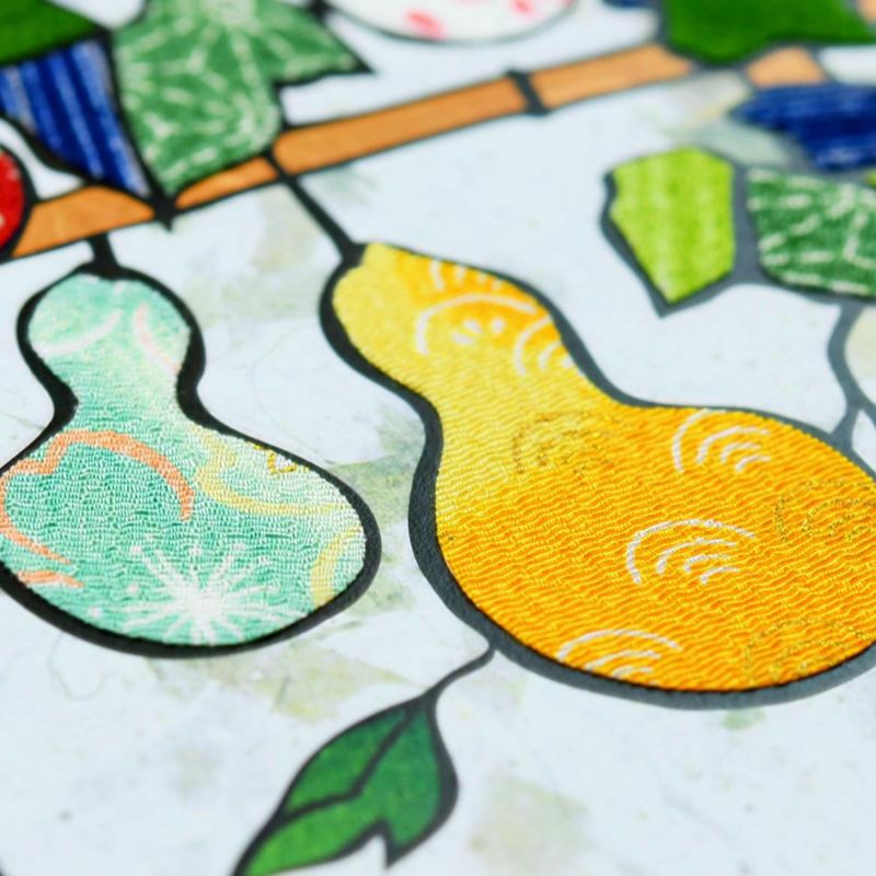 10枚もの国産ちりめん生地を使用して、豪華な布絵を仕上げます。