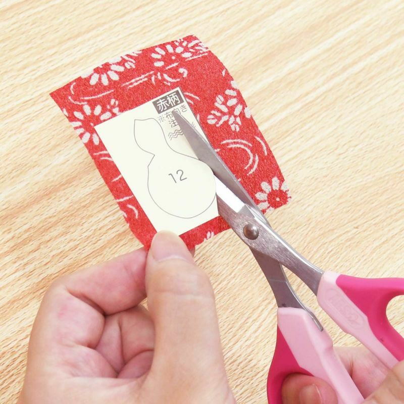 - 両面シール型紙の実線通りに、布を切り取ります。