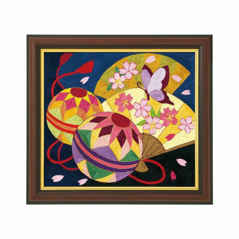 光沢感のあるフランス産の刺しゅう糸(26色)と金糸を使用して豪華なまりと扇桜を表現します。