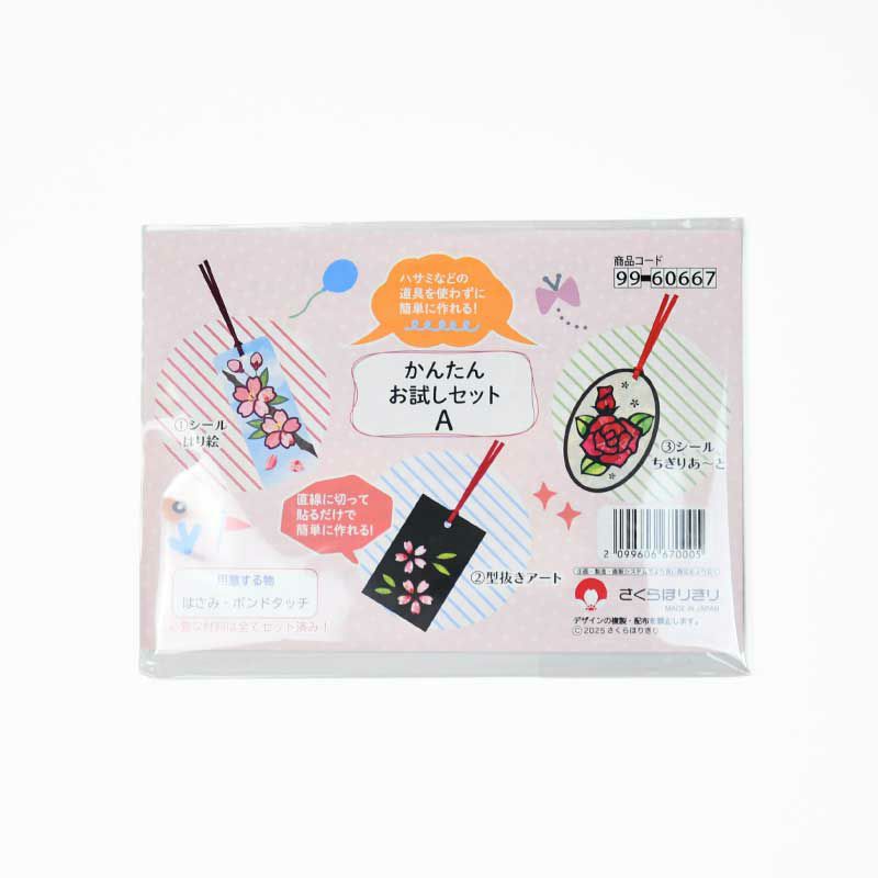 シールはり絵・さくらのしおり難易度レベル:★☆☆☆☆☆下絵にシールを貼って作る、いちばん簡単で安全な手作りです。パーツのシールは凸凹した質感で布の風合いを表現し、下絵ボードにはシールの貼り剥がしができる特殊加工を施しております。失敗知らずの楽しい手作りキットです!