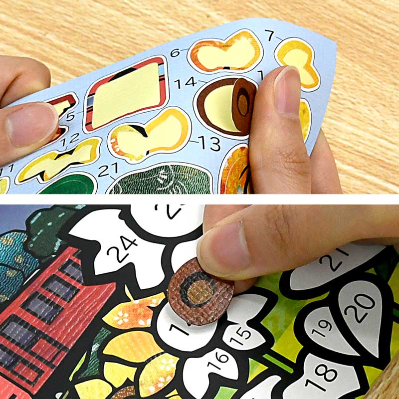 はさみなどの道具を使わず、シールを「貼る」「ちぎる」といった簡単な作業で作れます。