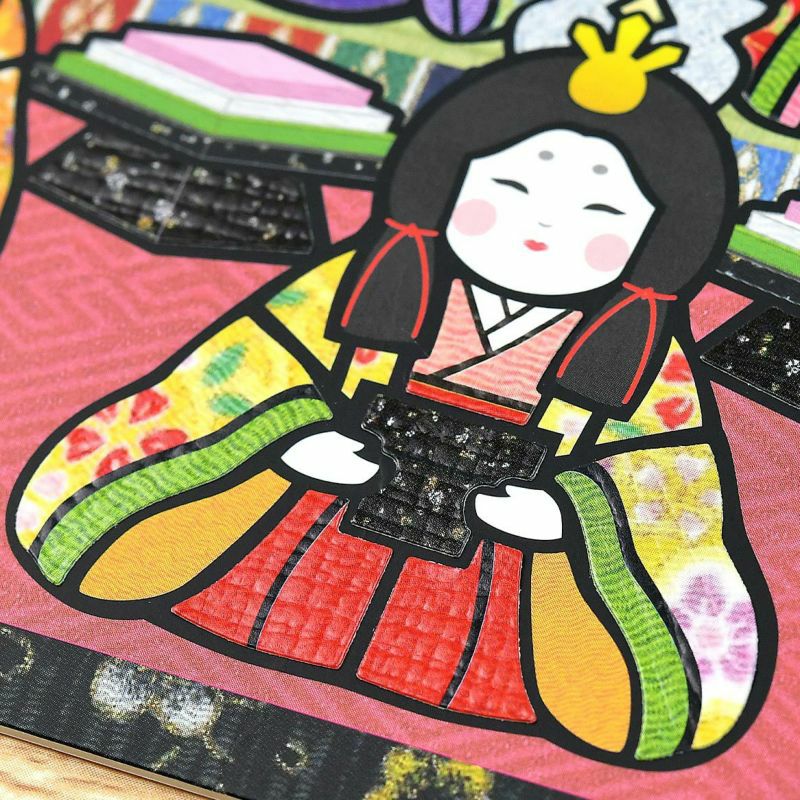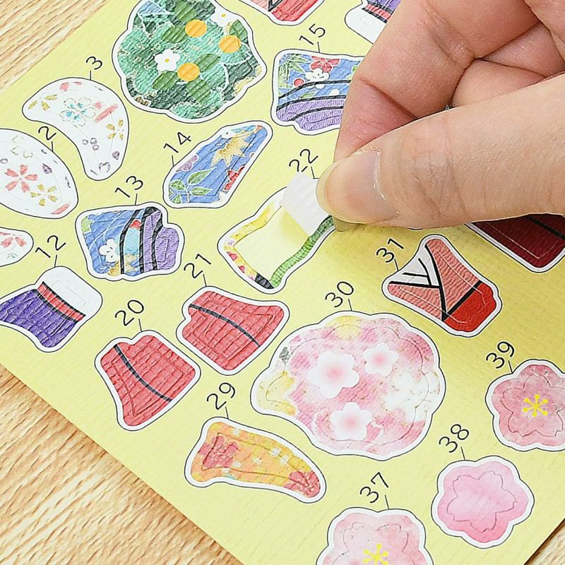 ちりめん布など実際の布を印刷したシールを使用しています。布を貼っているような完成度の高い仕上がりになります。