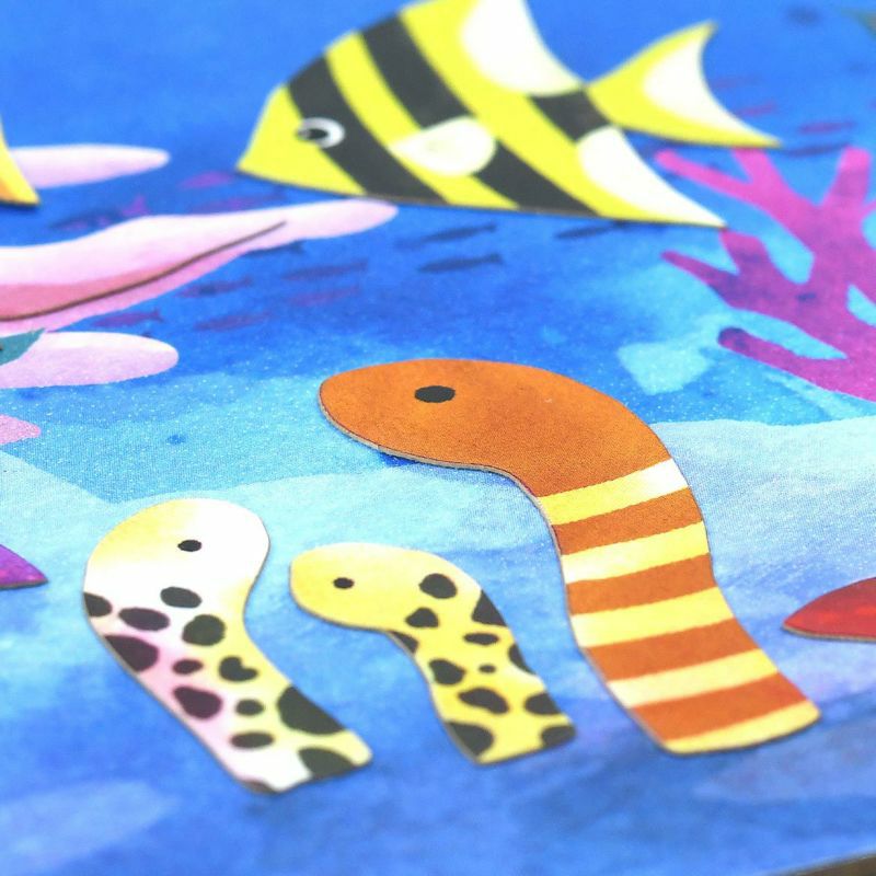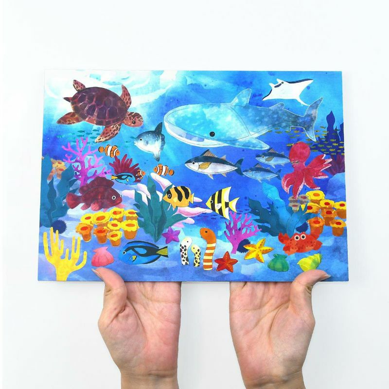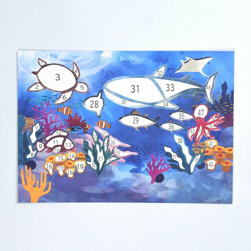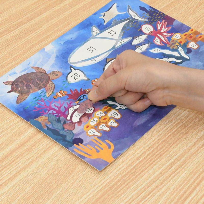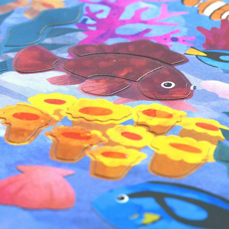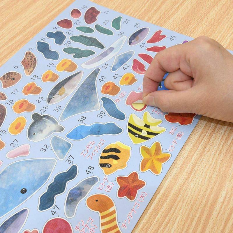 下半分に貼る貝、ヒトデやカニなど、一部の生き物は貼る場所が決められていないので、好きな場所に貼って楽しめます。