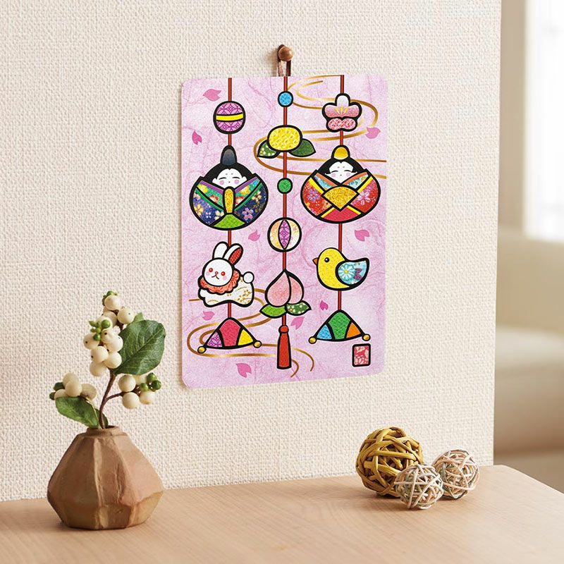 ちりめん布などを印刷したシールです。簡単にできて、まるで布の絵のような仕上がりです。