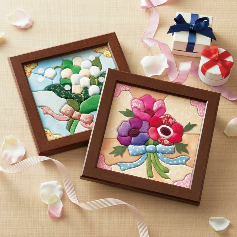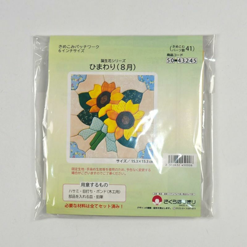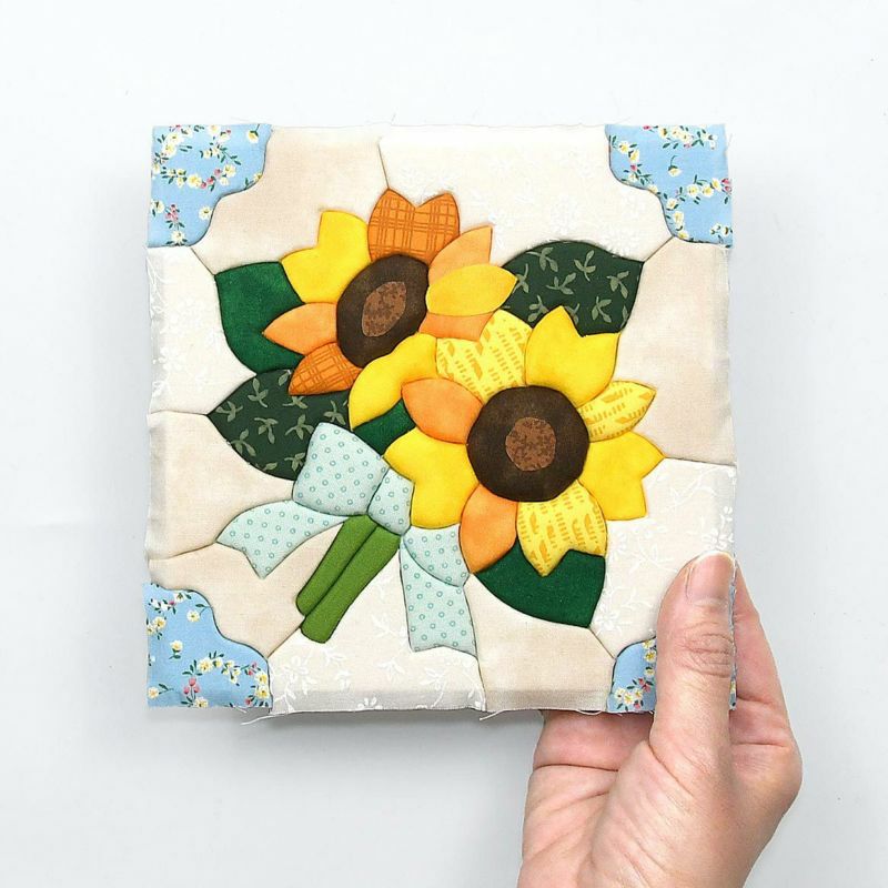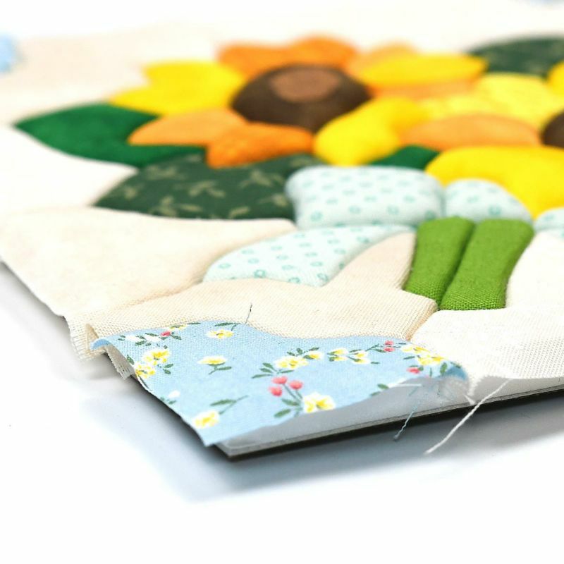 13枚もの鮮やかな布を使って作ります。すべてきめこみやすいコットン生地。仕上げの細かい作業もないので初めての方でも安心して作れます。