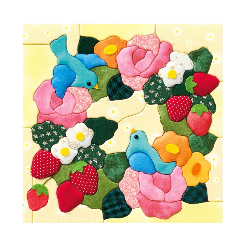 18枚のコットン布を使います。きめこみやすい素材なので、初心者の方でも安心してお作りいただけます。
