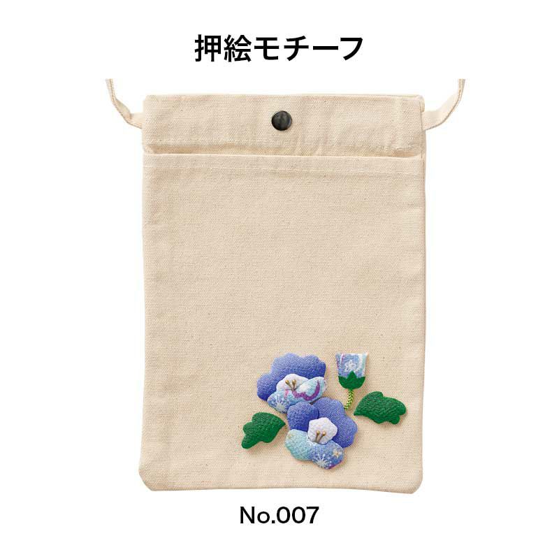 作るのは押絵のモチーフのみです。既製品のショルダーバッグに貼り合わせて完成です。