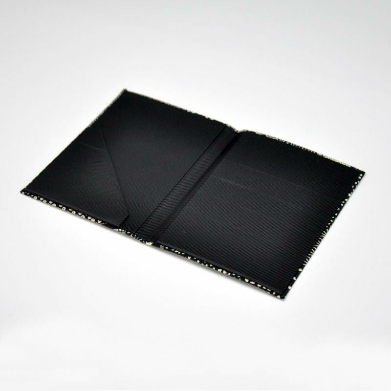- 布シールに型抜き済みボール紙を貼り、左右のポケットを作ります。