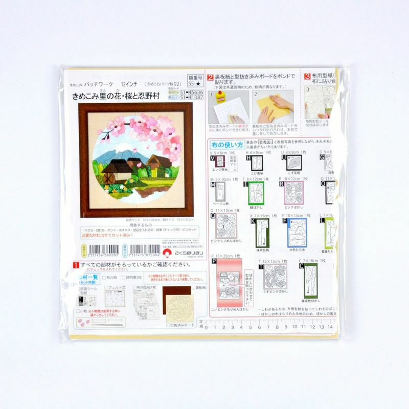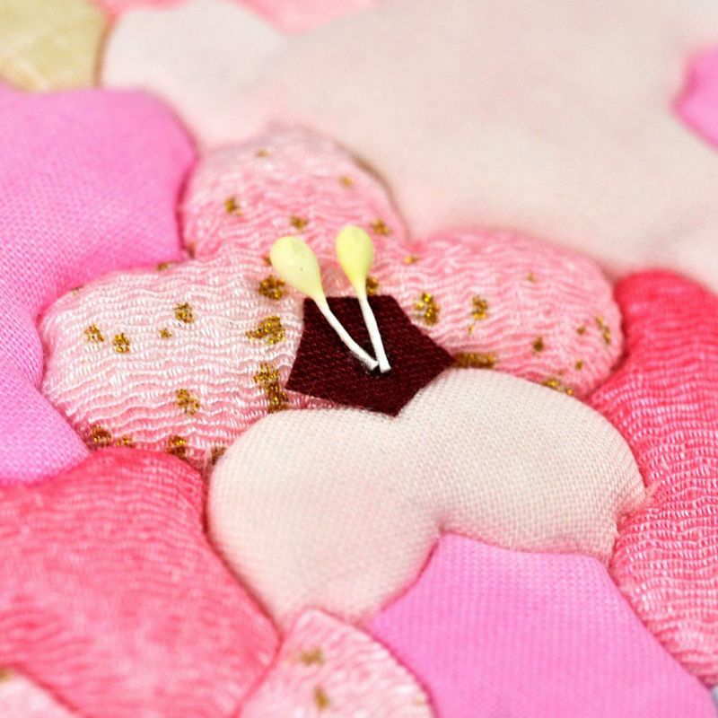 桜部分には6種類のピンク地を使用しています。柄布やグラデーション生地を効果的に使い立体的を表現しています。