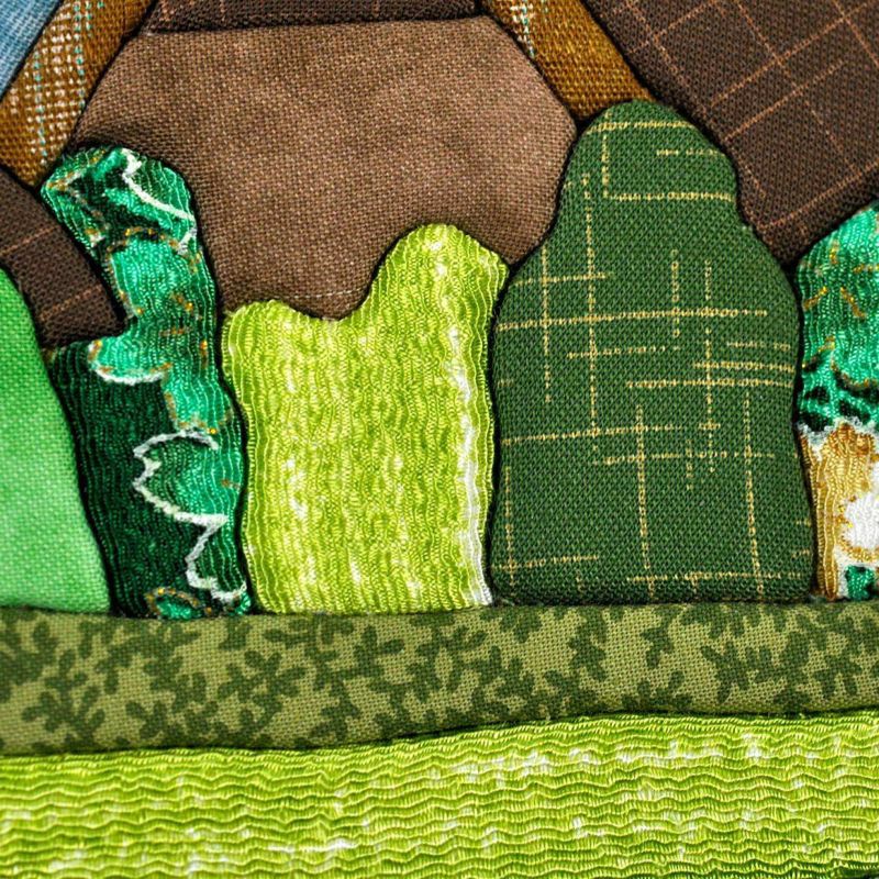 新緑を表現するために、緑は明るめの布を使用しています。また単調にならないように6種類の布を使い、華やかになるようにしています。