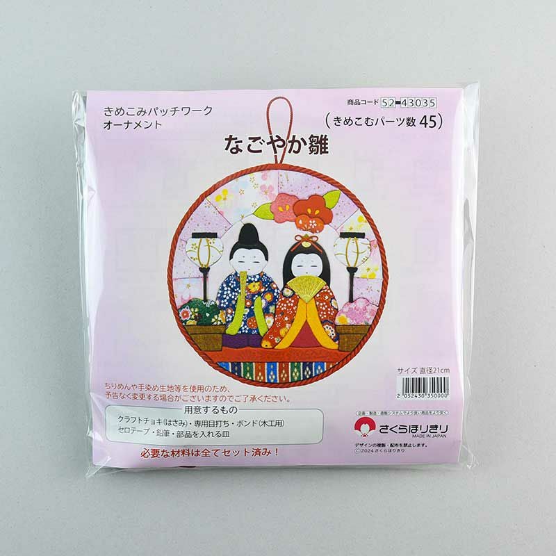 女雛、男雛の優しく朗らかな表情は、あらかじめ布に印刷されているものをきめこむので、他の布パーツ同様の流れで安心して作ることができます。