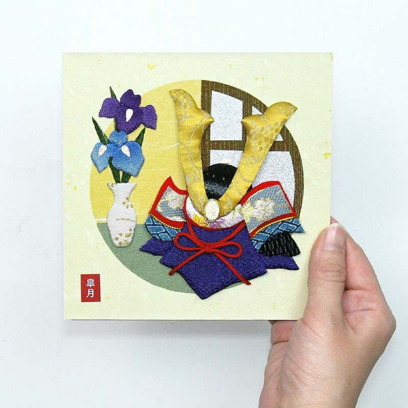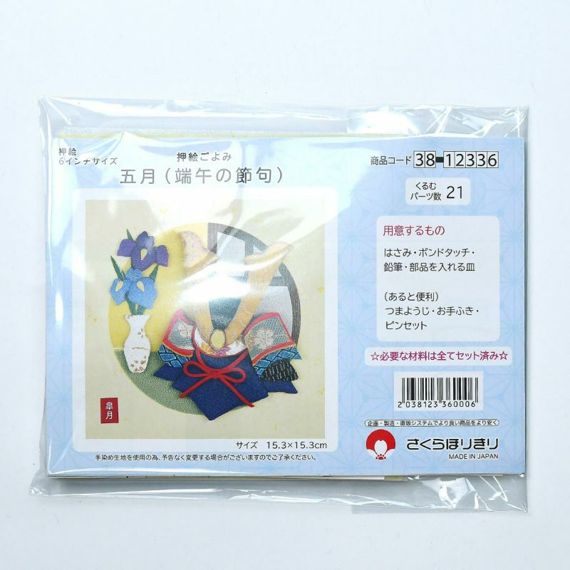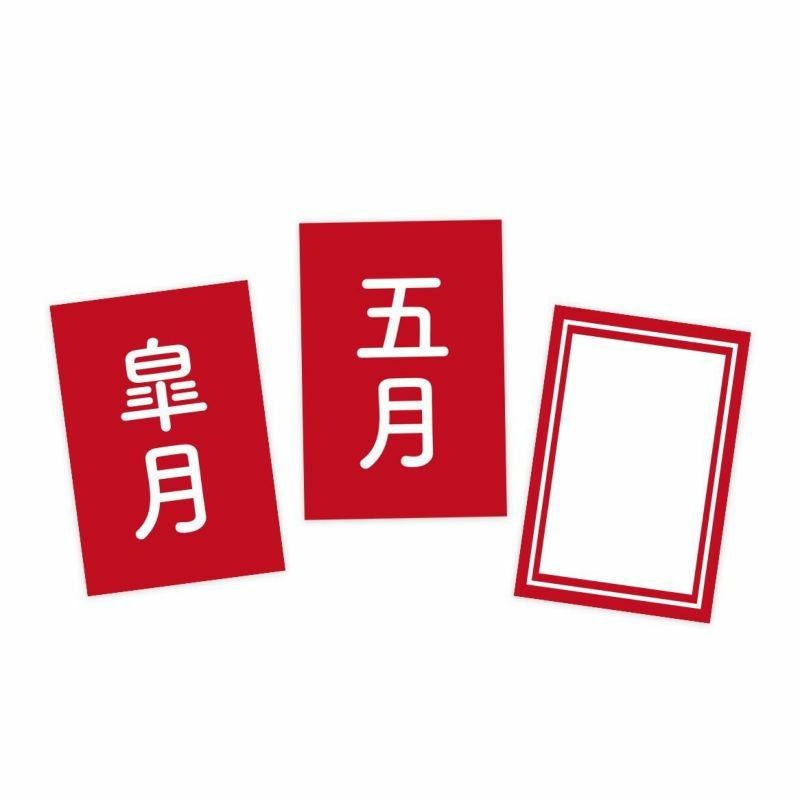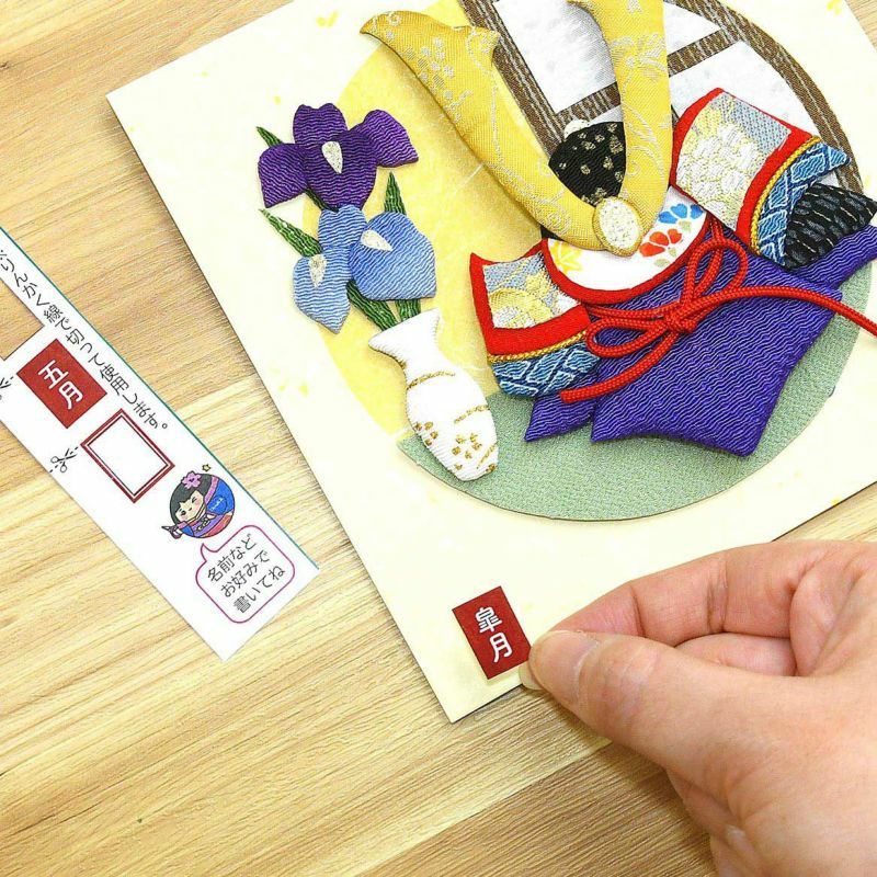 絵柄の左下の落款は「皐月」「五月」「文字なし」の3種類から選んで貼ることができます。説明書から切り離せるようになっています。
