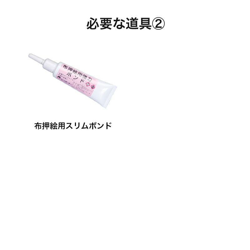 - はさみ、ボンドタッチ、セロテープ、布押絵用スリムボンド、目打ち、ピンセット