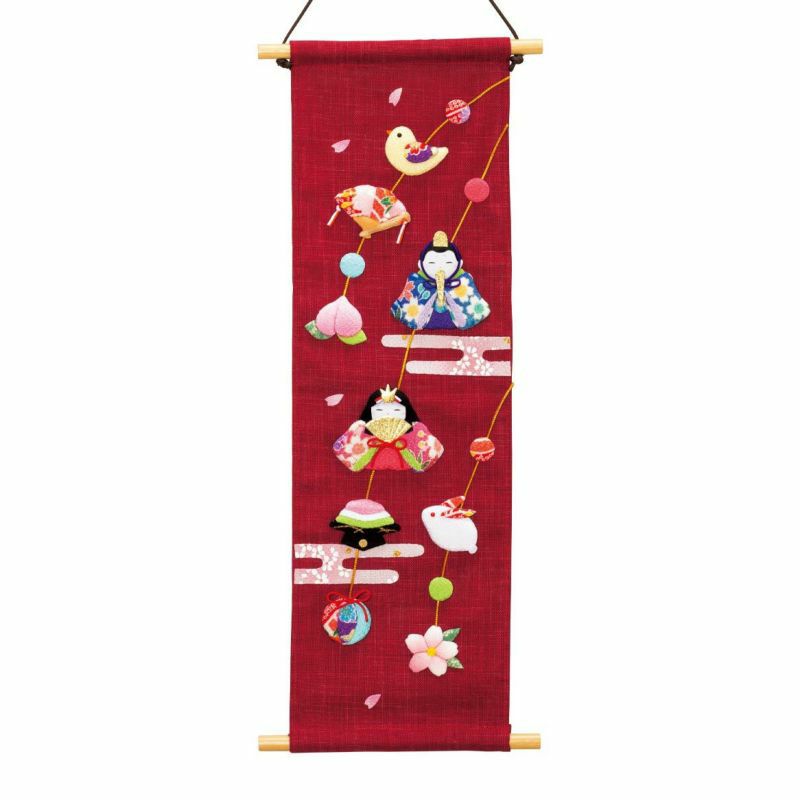 • 雛人形の脇飾りとして活用できるタペストリーです。別売りの「タペストリー用つるし台」にかけて飾ることができます。