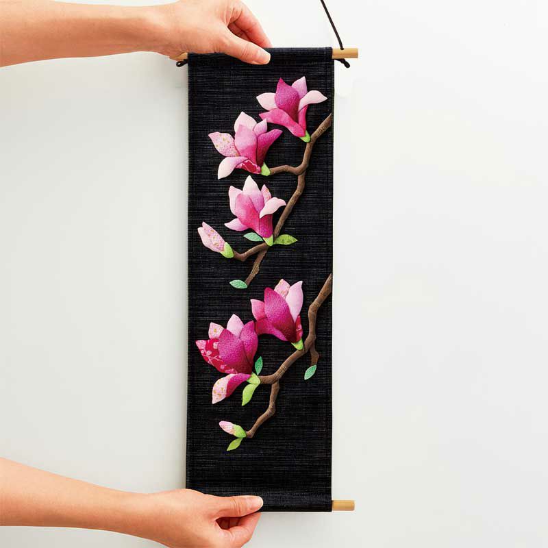 春空に向かって咲く清々しい木蓮の上品なタペストリーを玄関やお部屋に飾って、お客さまをお出迎え。見ているだけで心癒されるので贈り物にも喜ばれます。