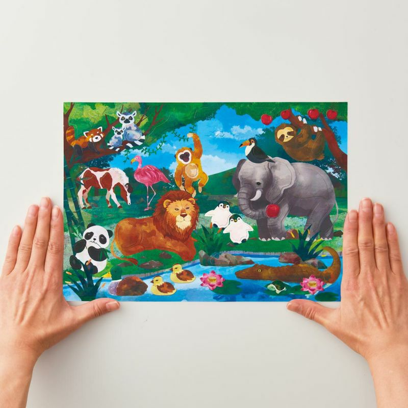 はさみなどの道具を使わず、シールを「貼る」「ちぎる」といった簡単な作業で作れます。