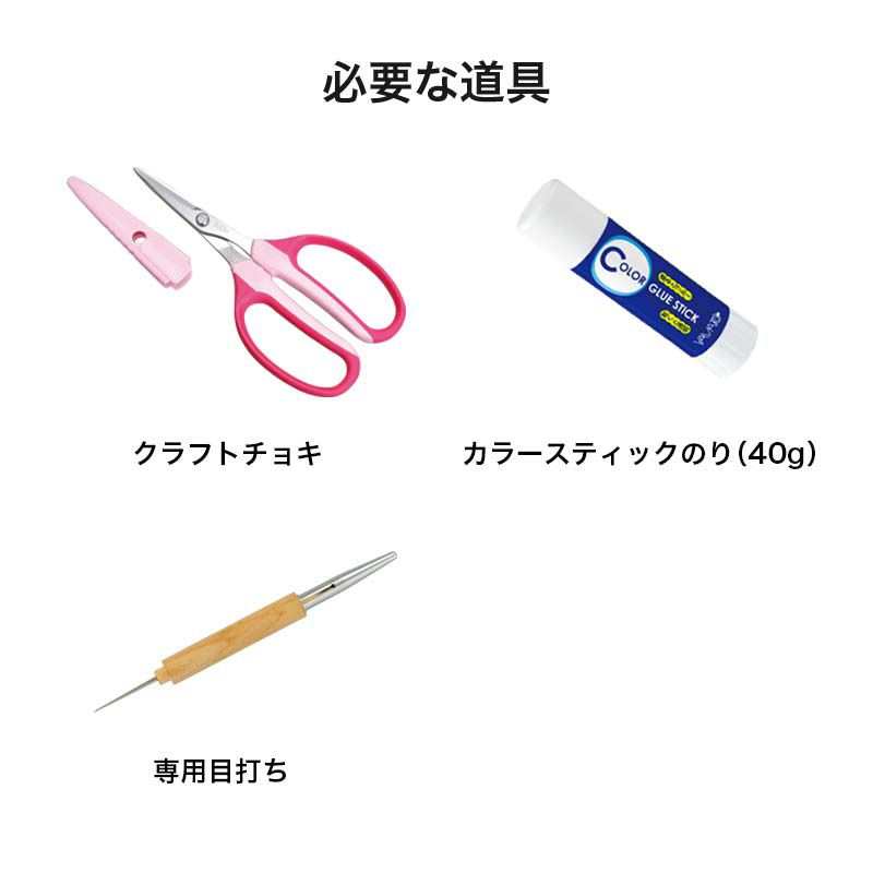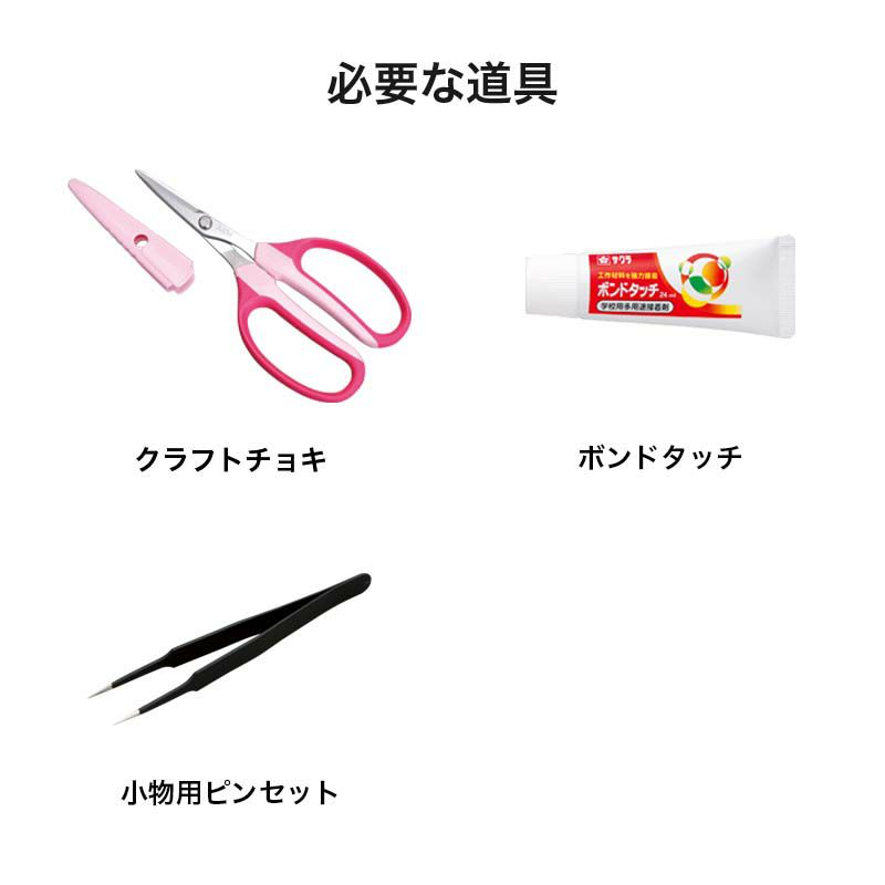 直線を「切る」、シールを「はがして貼る」、接着剤で「貼る」など、基本的な作業で作れます。
