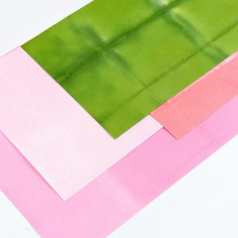 - 1で切り分けた両面シール型紙の裏紙をはがし、指定の和紙の裏に貼ります。
