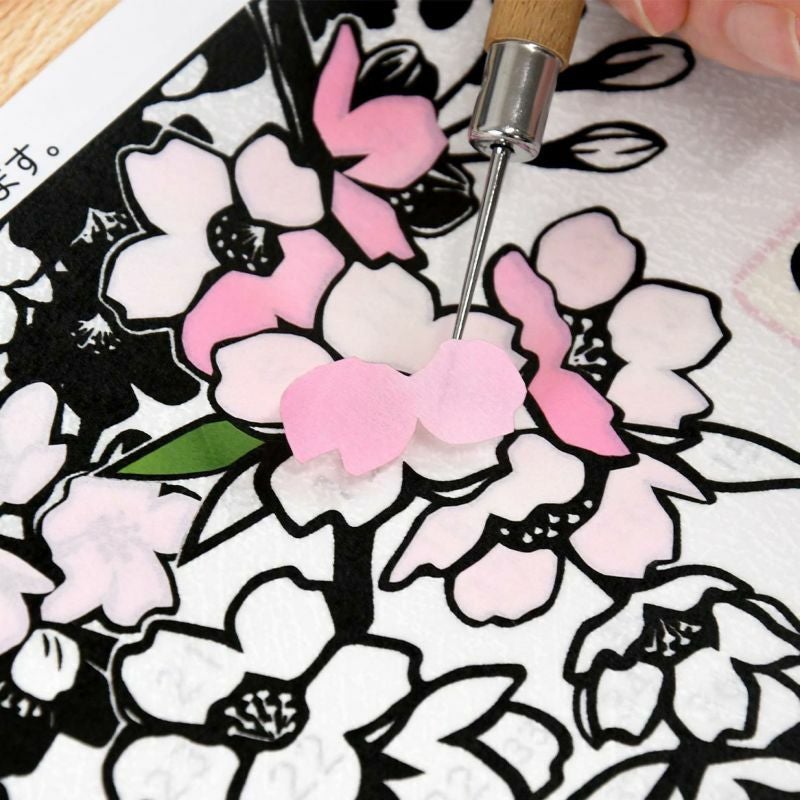 花の繊細さを板締め和紙の風合いを活かして表現します。3色のピンクを使い温かみのある桜が出来ます。