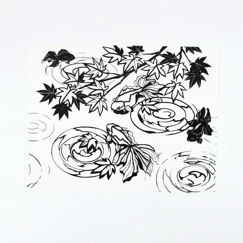 夏の青紅葉や、ゆらゆらと泳ぐ金魚の繊細さを手染め和紙で表現します。