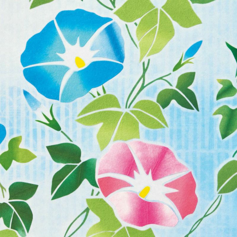 板締め和紙やぼかしの和紙を活かして朝顔のグラデーションを表現しています。