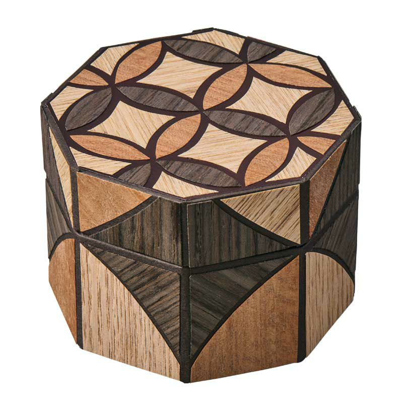 寄木細工のような工芸品を思わせる雰囲気で、置いているだけで空間をおしゃれに演出します。上品な七宝文様の箱は、小物を入れるだけでなく、贈り物としても喜ばれます。