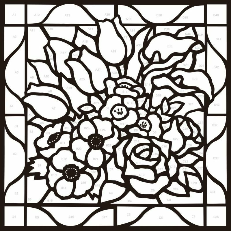 カラフルなステンドグラス風のデザイン。和紙の染めやぼかしを活かして作ります。