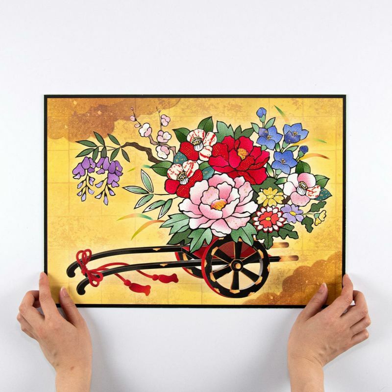 布のパーツを貼ってお花を作っていきます。生け花をするようにお花が増える様子をお楽しみいただけます。