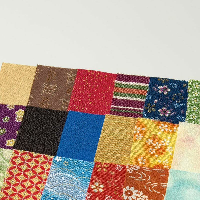 ちりめん、ジャガード、どんす等、高級な和布を使用しています。様々な布の質感を楽しみながら作り、豪華な布絵に仕上がります。