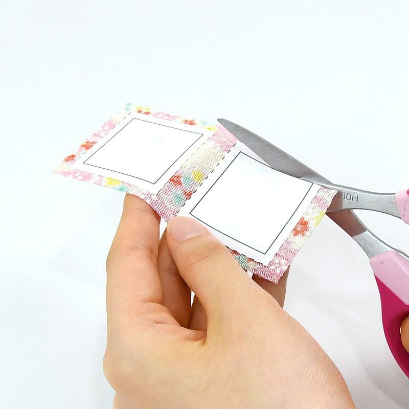 - 型紙シールの実線通りに、布を切ります。