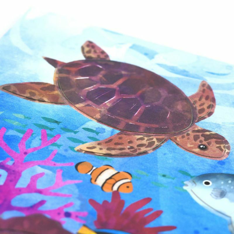 下半分に貼る貝、ヒトデやカニなど、一部の生き物は貼る場所が決められていないので、好きな場所に貼って楽しめます。