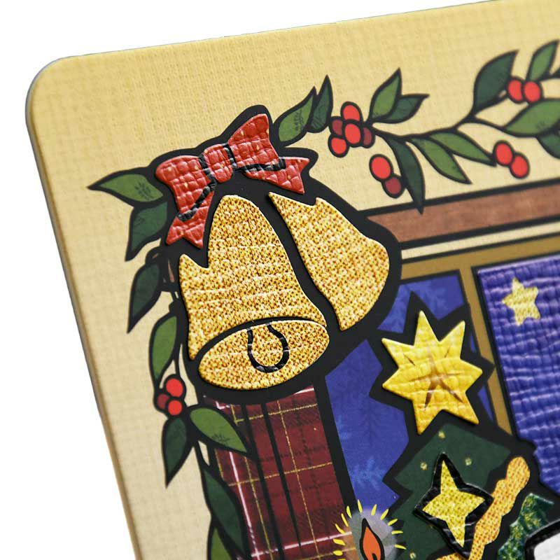 ツリーの飾りは自由に貼れるパーツで、お好みの場所に貼って楽しむことができます。